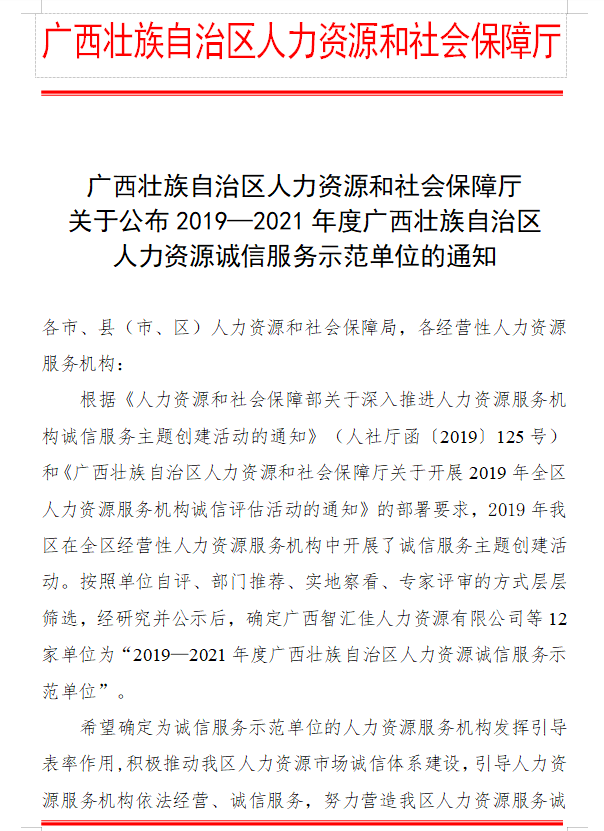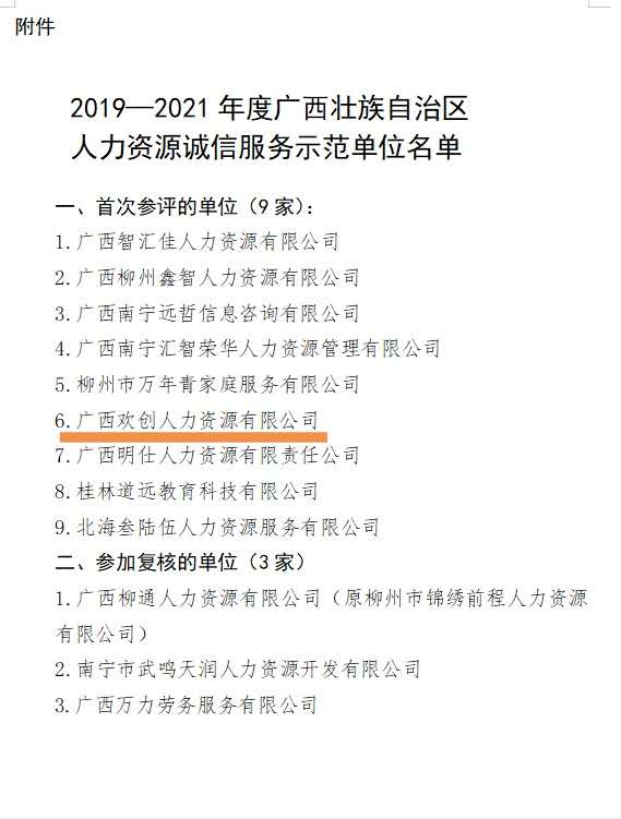喜报 | 广西欢创人力荣获自治区“人力资源诚信服务示范单位”!