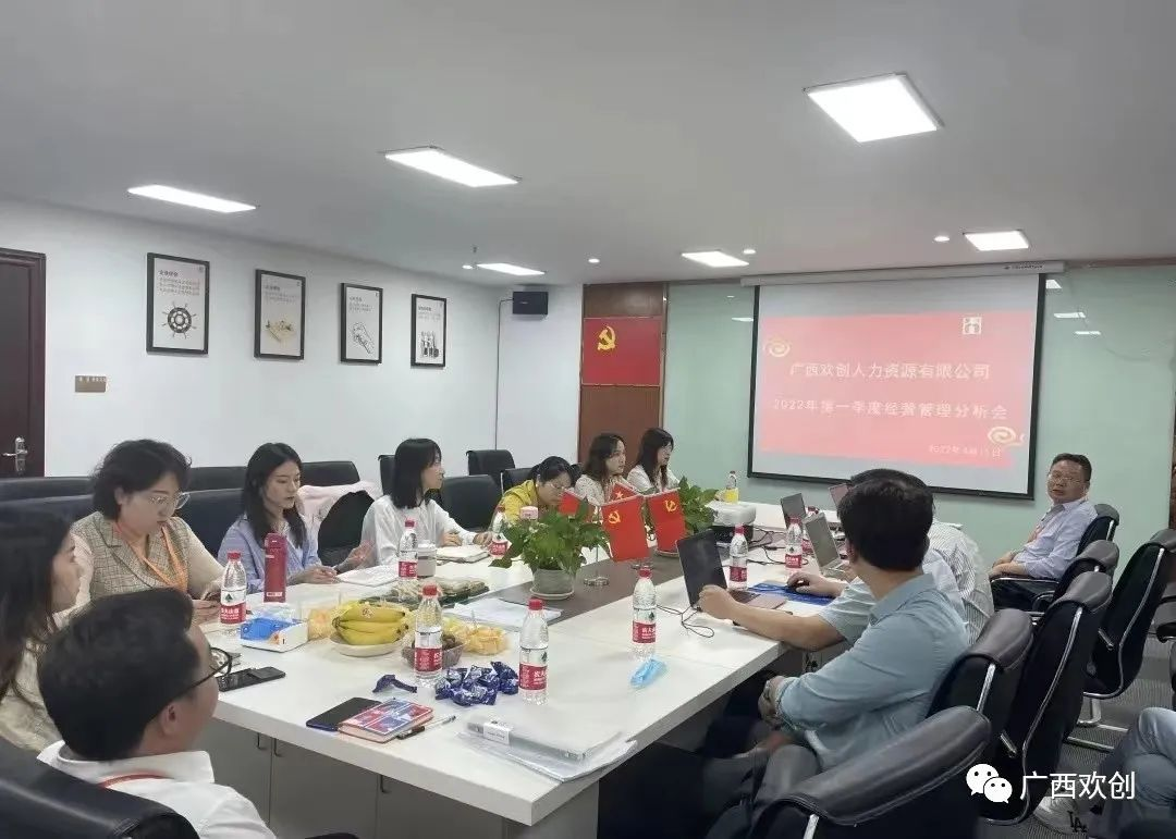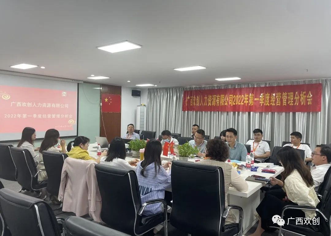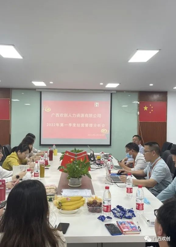 4月15日,广西欢创人力资源有限公司2022年第一季度经营管理分析会在南宁总部召开。此次会议由公司总经理蒋仕东先生主持,围绕“2022年第一季度总结汇报各部门经营管理工作情况,并做出下个季度的计划和实施方案及改进方案”主题展开。会议伊始,蒋总指出此次会议旨在总结、分析一季度公司经营管理工作情况,指导各部门更好规划下一季度的工作,以期更好地达成全年的各项经营指标。