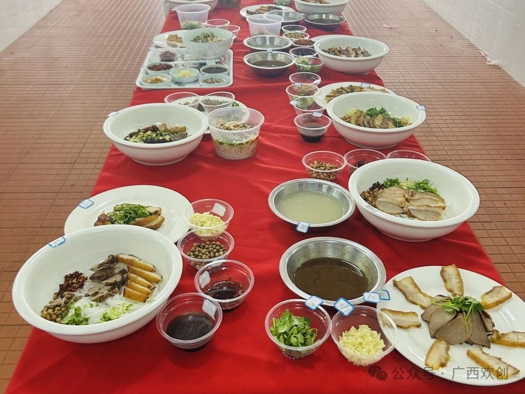 在螺蛳粉制作的赛场上,选手们认真挑选原料,细心调制汤汁,干净利落地抡起大勺在大火中的锅里挥舞,在炊烟袅袅,香气四溢的比拼中展现了精湛技艺。