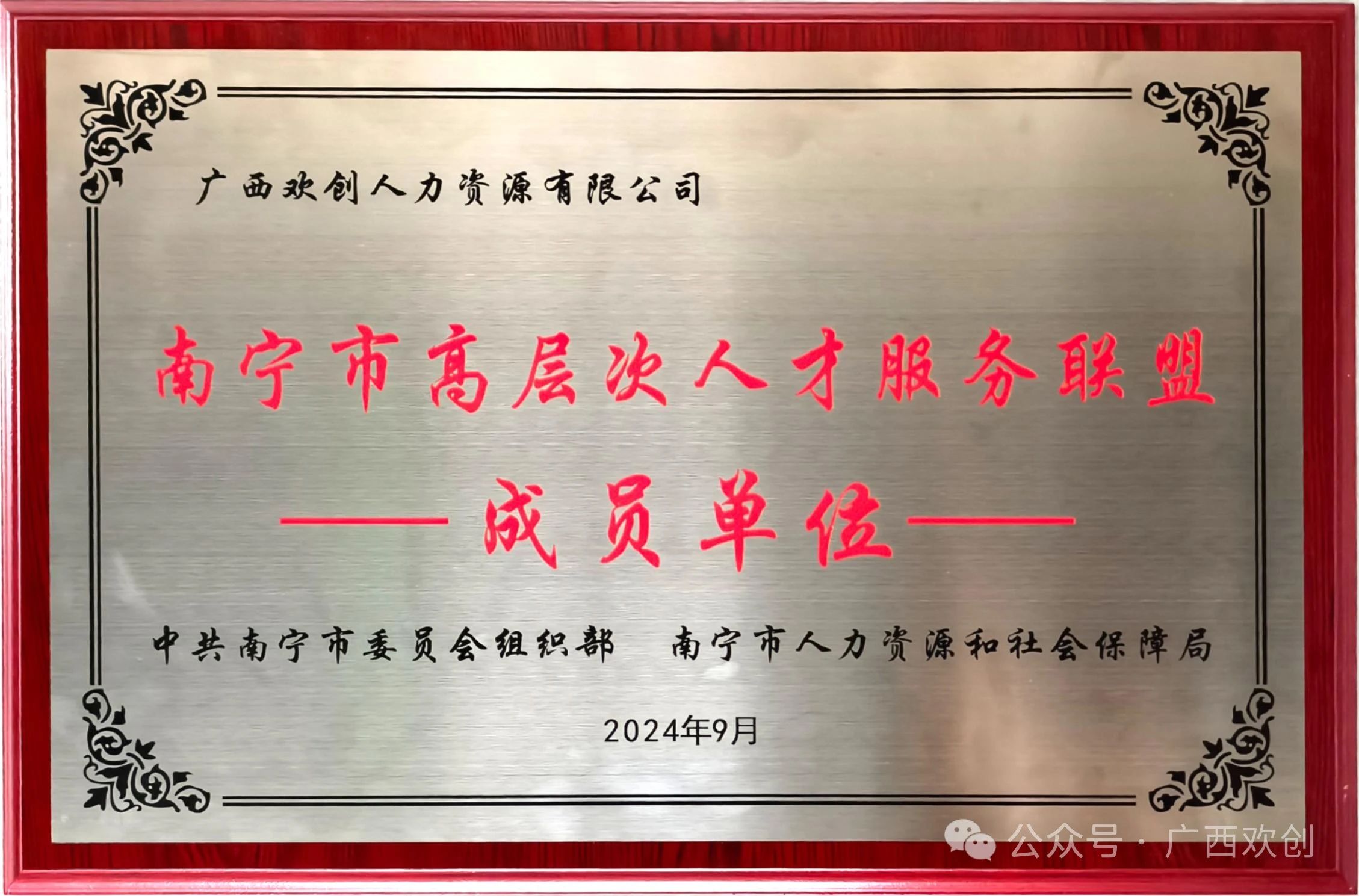 喜报丨我司被认定为南宁市高层次人才服务联盟成员单位!