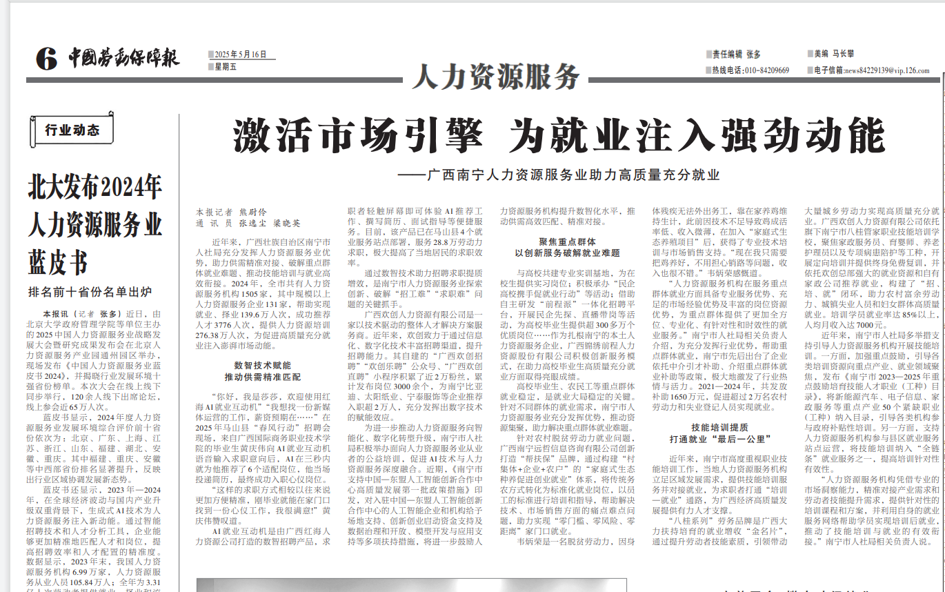 【行业资讯】激活市场引擎,为就业注入强劲动能——广西南宁人力资源服务业助力高质量充分就业