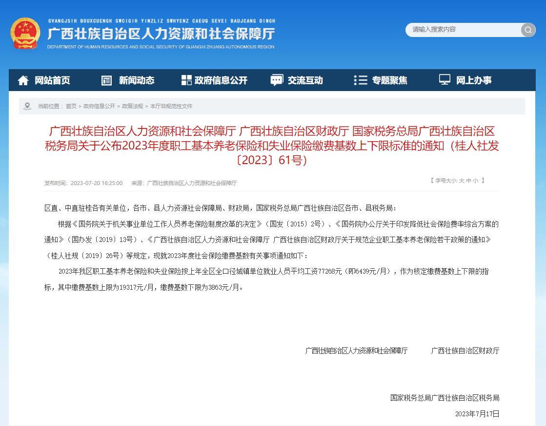 定了!2023年广西基本养老和失业保险缴费基数上下限标准发布!