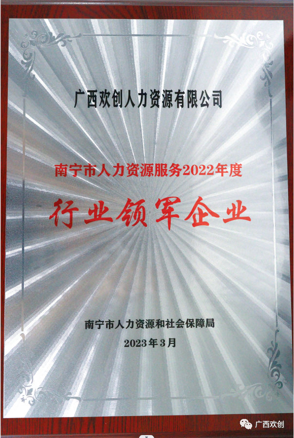 喜报 | 广西欢创人力被认定为“南宁市服务业龙头企业”!广西欢创人力资源有限公司被认定为“南宁市服务业龙头企业”;广西欢创人力资源有限公司总经理蒋仕东先生荣获“南宁市服务业明星企业家”称号!了解更多+ -