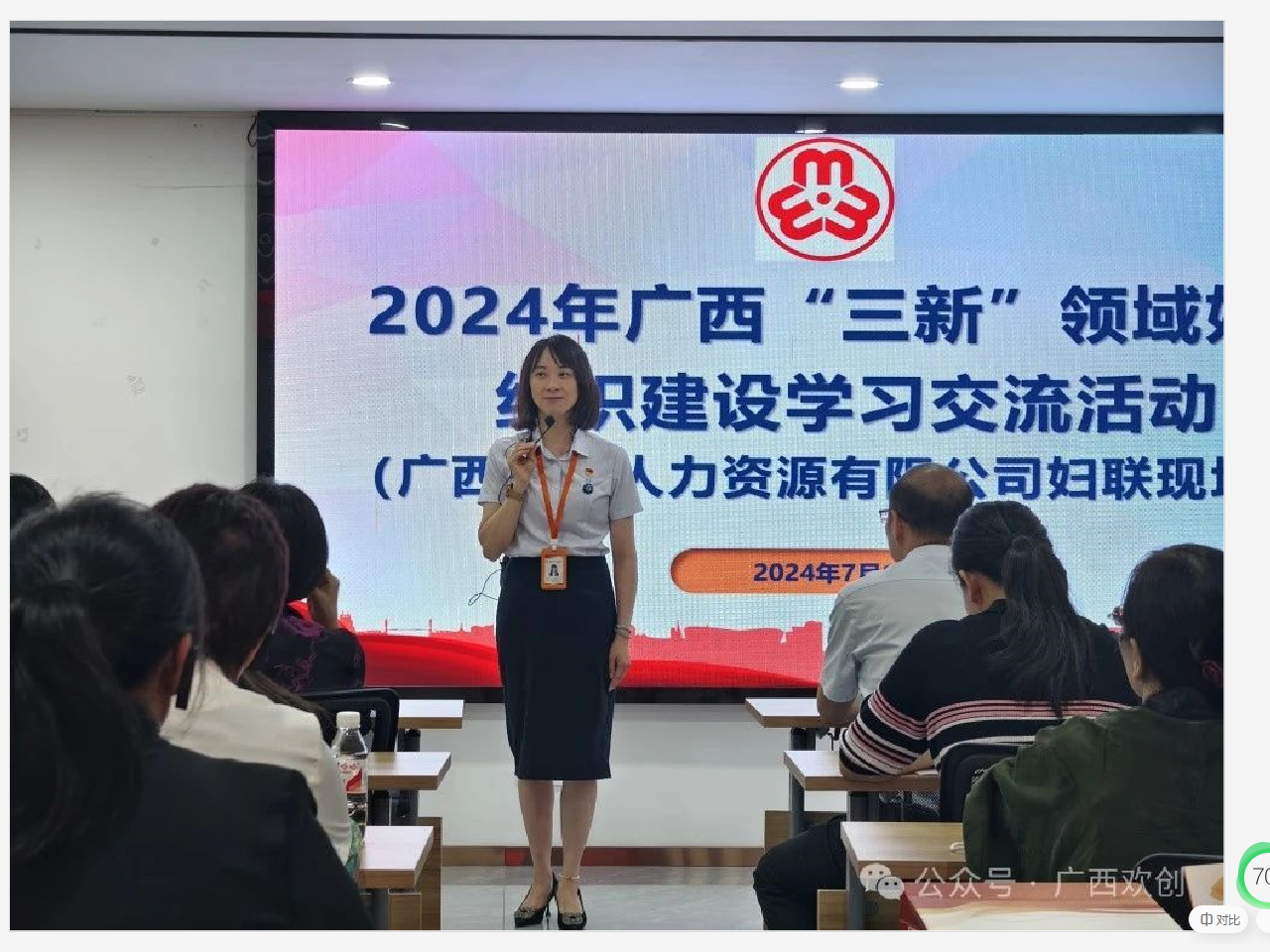全区各地市妇联代表莅临我司开展“三新”领域妇联组织建设学习交流活动自治区妇联于2024年7月15日至16日在南宁市举办2024年广西“三新”妇联组织建设学习交流活动,全区各地市妇联分管副主席、组织部主要负责同志、县(市、区)妇联主席代表共60人赴广西欢创人力资源有限公司进行考察交流。了解更多+ -